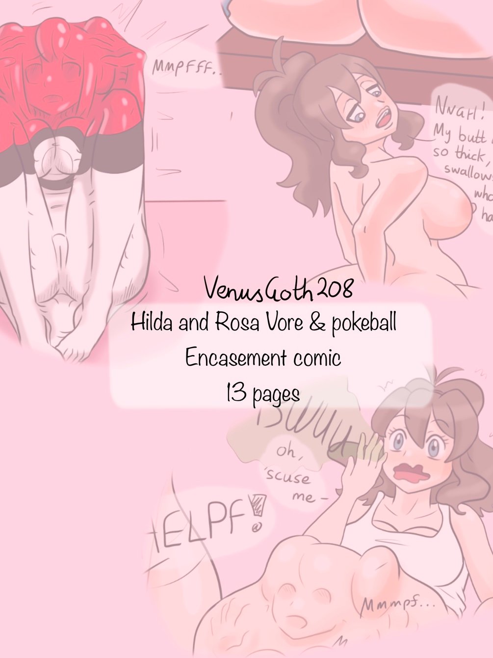 13 colored pages of latex encasement and vore with postvore, featuring Hilda, Rosa and 7 other pokegirls